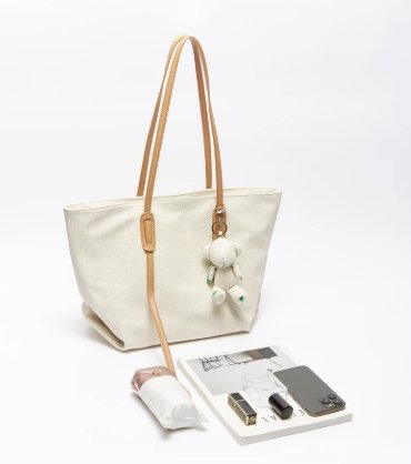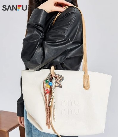 特別的是,包的掛飾設計豐富有趣,豹紋、彩色圓珠與流蘇元素相結合,為整體增添了一抹俏皮與野性,使包包更具個性。它擁有超大容量,能輕鬆容納文件、筆記本、化妝品等上班或上課所需物品,是兼具實用性與時尚感的通勤好物。