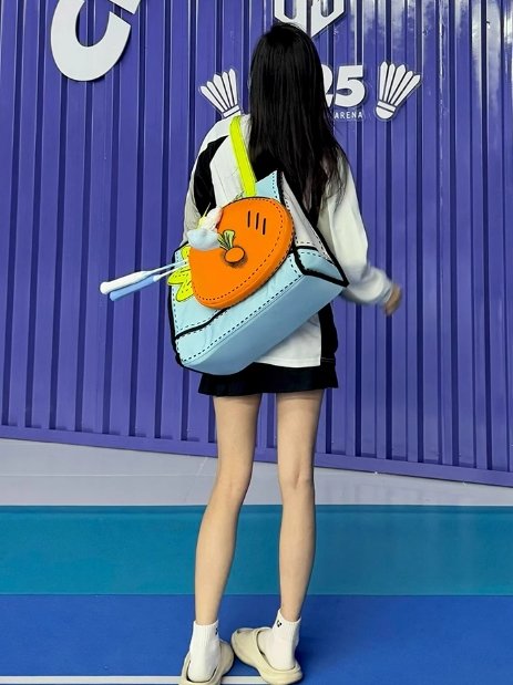 包包上還掛有創意小掛牌,增添了幾分趣味與個性。無論是日常出街,還是運動出行,這款包包都能憑借獨特的設計與實用的功能,成為眾人矚目的焦點,完美滿足個性追求與實際使用需求。