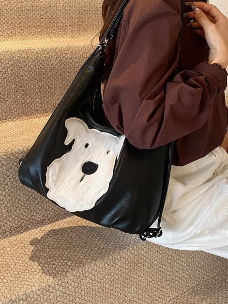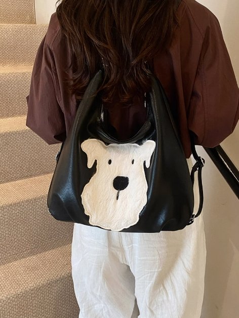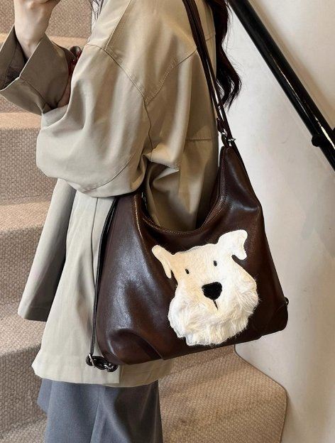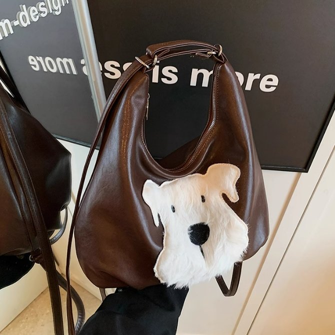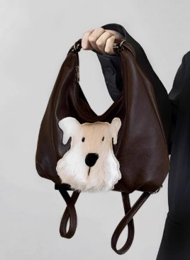 最引人注目的是包身正面可愛的西高地犬造型,白色絨毛與深棕皮革形成鮮明對比,萌趣又俏皮,為包包增添了靈動氣息。它擁有大容量內部空間,能輕松容納日常用品,滿足通勤需求。