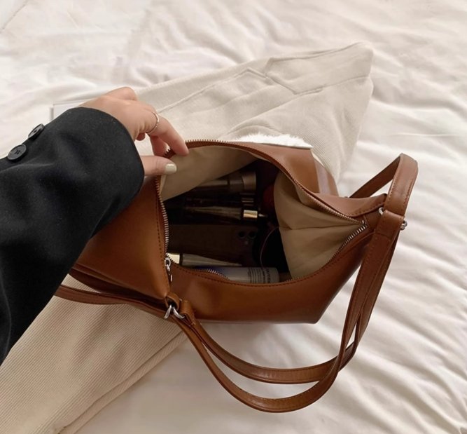 這款年新款托特包,洋溢著獨特的高級感,且頗具小眾魅力。包包以深棕色皮革精心制作,皮質細膩,光澤柔和,展現出不凡的質感。