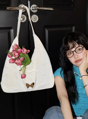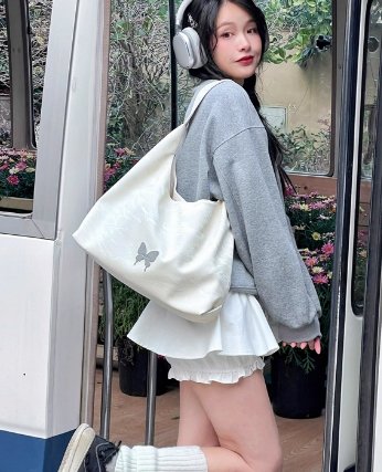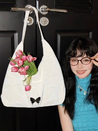 奶油銀河托特包,渾身散發著慵懶而迷人的氣質。包身選用黑色面料,表面有精緻的紋理,增添了質感與層次。蝴蝶裝飾巧妙點綴其上,為整個包包注入了浪漫靈動的元素,瞬間提升時尚度。