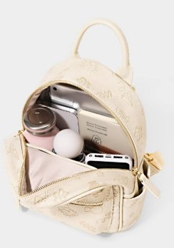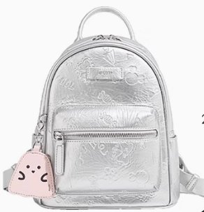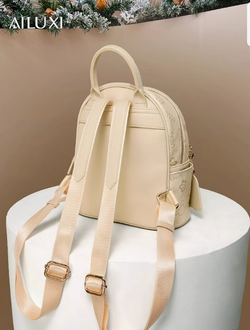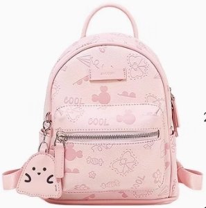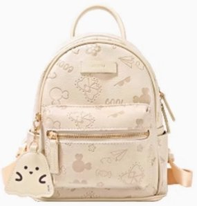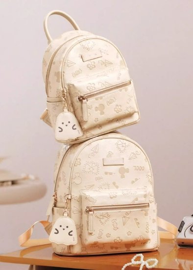 這款女款雙肩包,洋溢著小眾設計感。包身以溫柔米白色為主,表面印有多個可愛小圖案,增添俏皮氛圍。