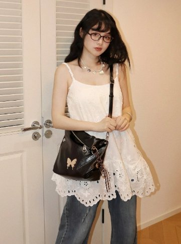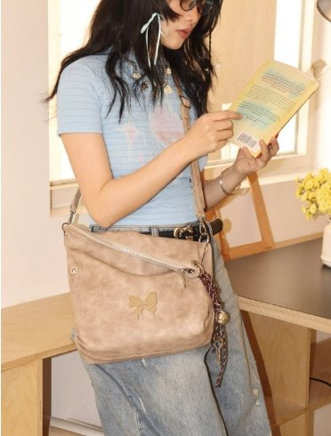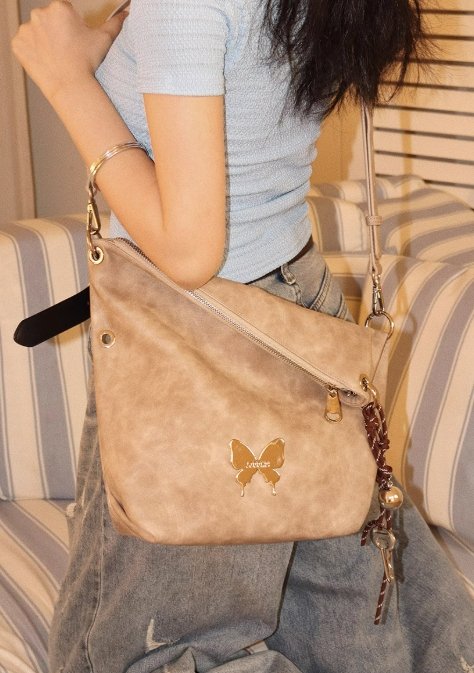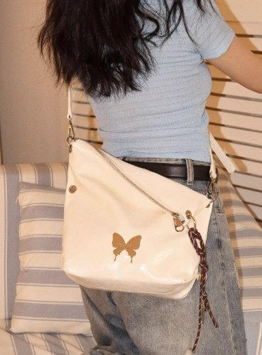 時尚設計:簡約的托特包形,搭配獨特的蝴蝶吊飾,增添一份俏皮與生動。
