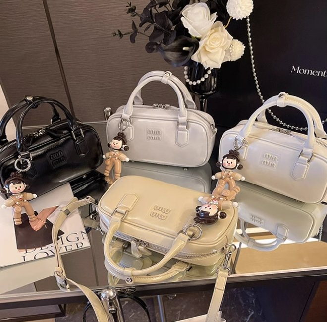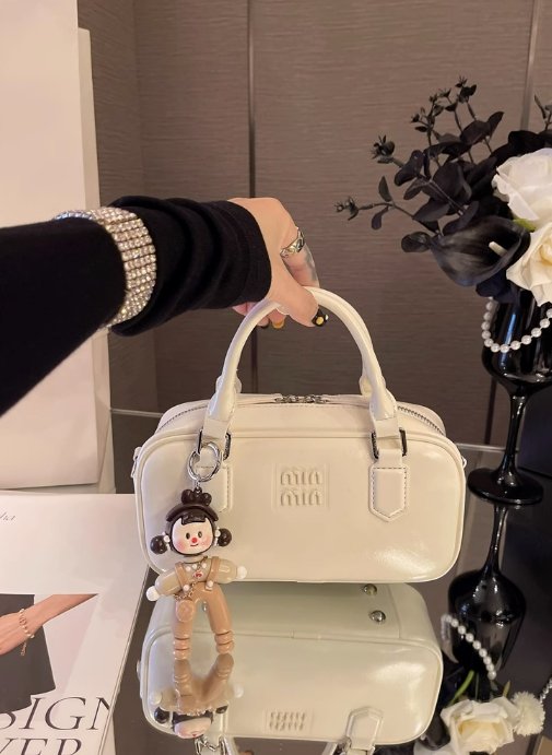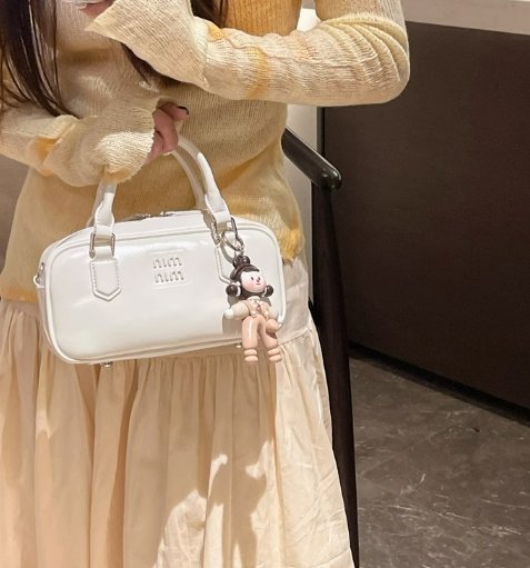 讓您的風格更上一層樓,這款時尚優雅的米白色保齡球包是您不可或缺的配件。簡約而精緻的設計,搭配可愛的娃娃吊飾,讓這款包包不僅實用,更是您時尚品味的展現。