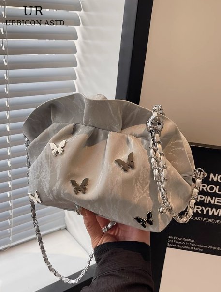 這款時尚黑色蝴蝶裝飾鏈條雲朵包不僅是一個實用的配件,更是您時尚品味的體現。無論您是去上班、約會還是參加派對,它都能為您的整體造型增添一抹亮色。立即擁有,展現您的獨特風格!
