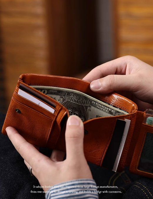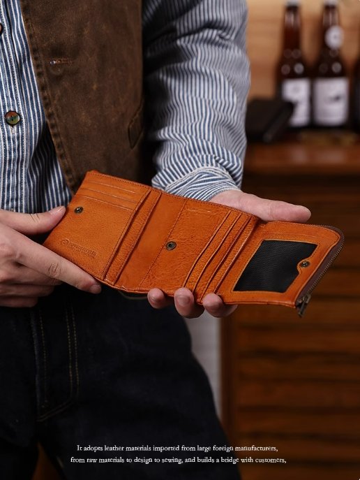 這款真皮錢包,設計簡約而經典,適合追求低調奢華的男士。採用優質頭層牛皮,手感柔軟且耐磨耐用。錢包正面壓印有品牌標誌,彰顯品牌氣質。內部多卡位設計,可以輕鬆收納信用卡、身份證等卡片,還有專門的紙幣夾層,方便整理和取用現金。此外,這款錢包還具備消磁防盜刷功能,有效保護您的卡片信息安全。無論是商務場合還是休閒時刻,這款錢包都能展現您的品味與風格。