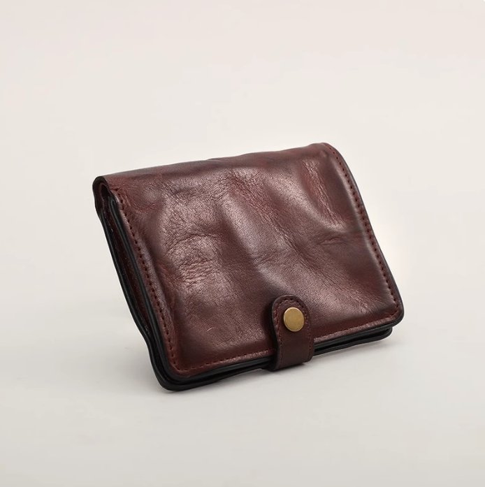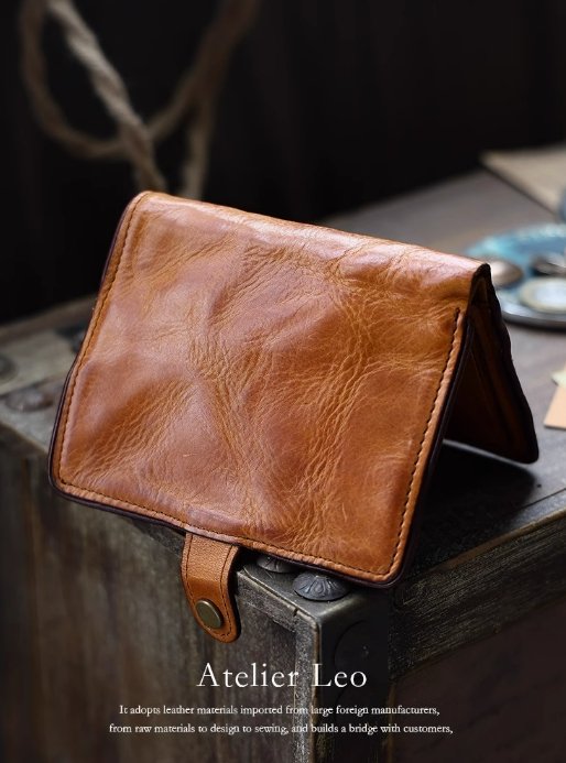 AtelierLeo 植鞣皮短款錢包男真皮豎款牛皮皮夾手工復古駕駛證卡包