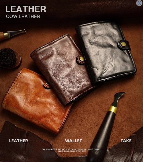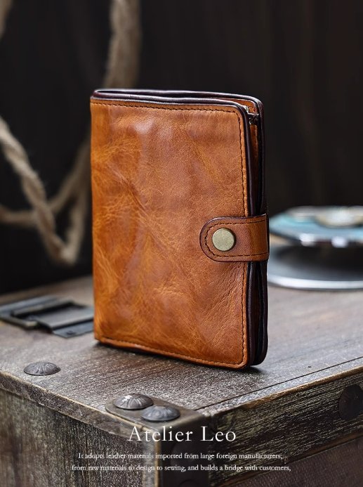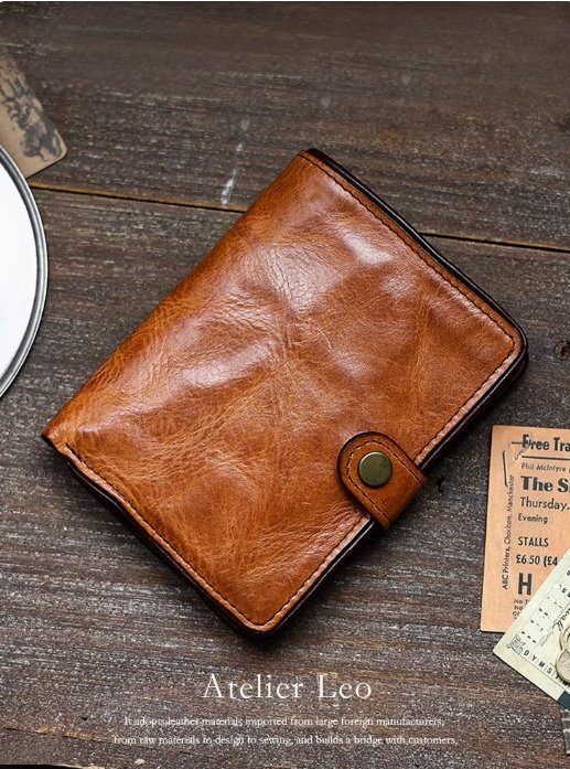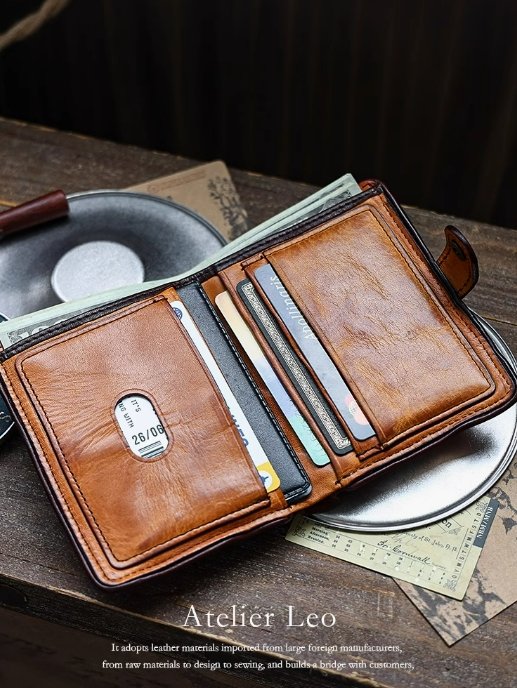 搶先評價 “AtelierLeo 植鞣皮短款錢包男真皮豎款牛皮皮夾手工復古駕駛證卡包”