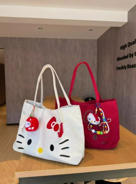 HelloKitty 凱蒂貓帆布托特包手提單肩通勤大容量學生女