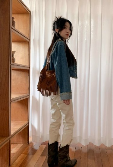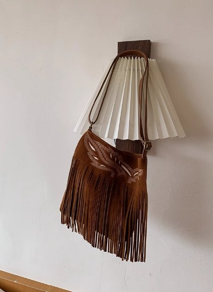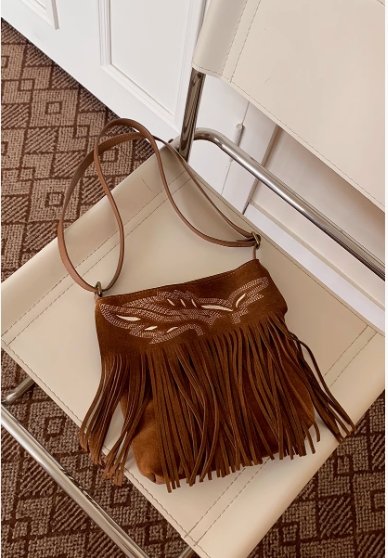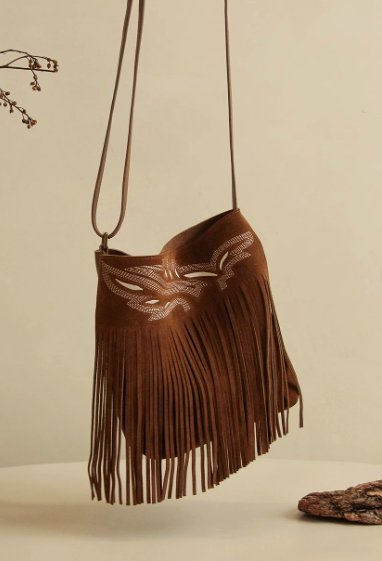 包身正面的 “卡斯帕繡邊” 設計是一大亮點,精美的線條勾勒出獨特圖案,增添了精致感與藝術氣息。下方自然垂下的流蘇,隨著身體擺動輕輕晃動,為整個包包注入了靈動與活力,彰顯出波西米亞風情。
