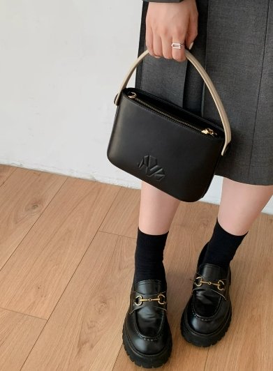 簡約的方形包型,線條利落流暢,搭配精巧的手柄,手柄的淺色部分與黑色包身形成對比,增添了設計感。手柄粗細適中,方便手提,且與包身的銜接處做工精細,整體感強。包身正面低調的品牌標識壓花,精致而不張揚,巧妙地展現出品牌身份。