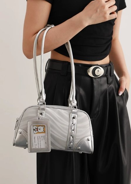 UR高級感銀色保齡球包女2潮百搭氣質腋下包休閒單肩手提包