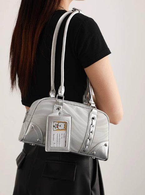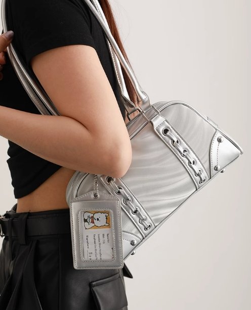 搶先評價 “UR高級感銀色保齡球包女2潮百搭氣質腋下包休閒單肩手提包”