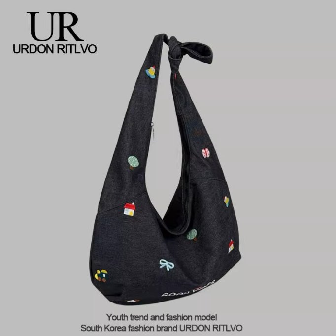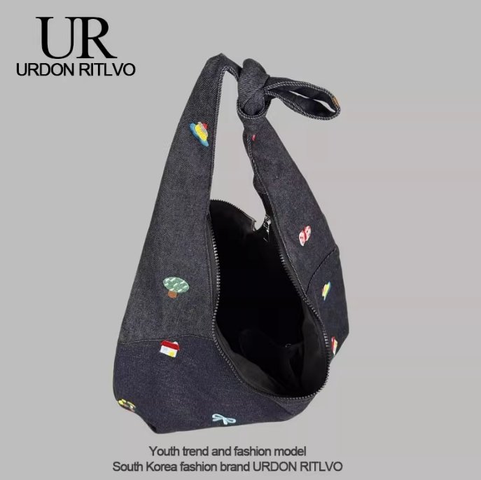 這款 UR 日系學院風托特包,是大學生上課與上班族通勤的絕佳選擇。包身以牛仔布製成,呈現出休閑文藝的氣質。 包身的可愛小圖案,如蘑菇、房屋等,增添了滿滿的日系學院風情,讓整個包顯得活潑俏皮。大容量的設計,能輕松容納書本、筆記本電腦等日常用品,實用性滿分。 獨特的造型搭配長肩帶,可單肩背挎,也可在頂部打結變換造型,隨心所欲展現不同風格。它完美融合了時尚與實用,無論是漫步校園,還是穿梭於辦公樓間,都能讓您散發出獨特的青春時尚魅力。